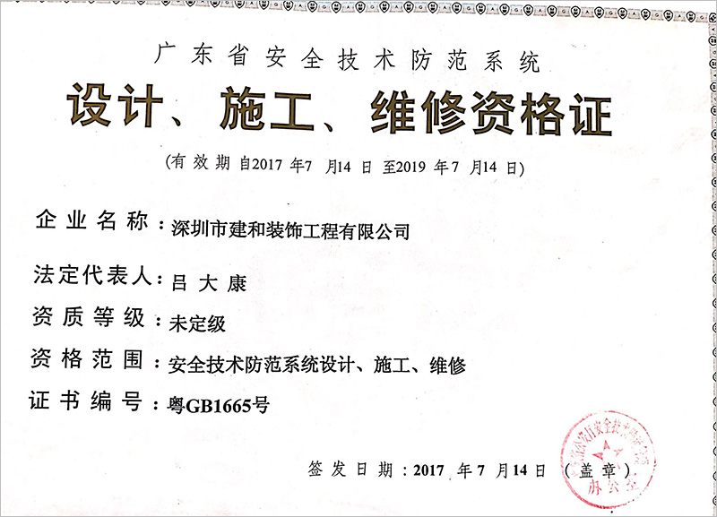 熱烈祝賀我司喜獲“廣東省安全技術防范系統設計、施工、維修資格證”
